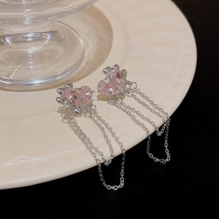 Sweet Pink Cubic Zirconia Multi-Hearts Tassel Chain Earrings