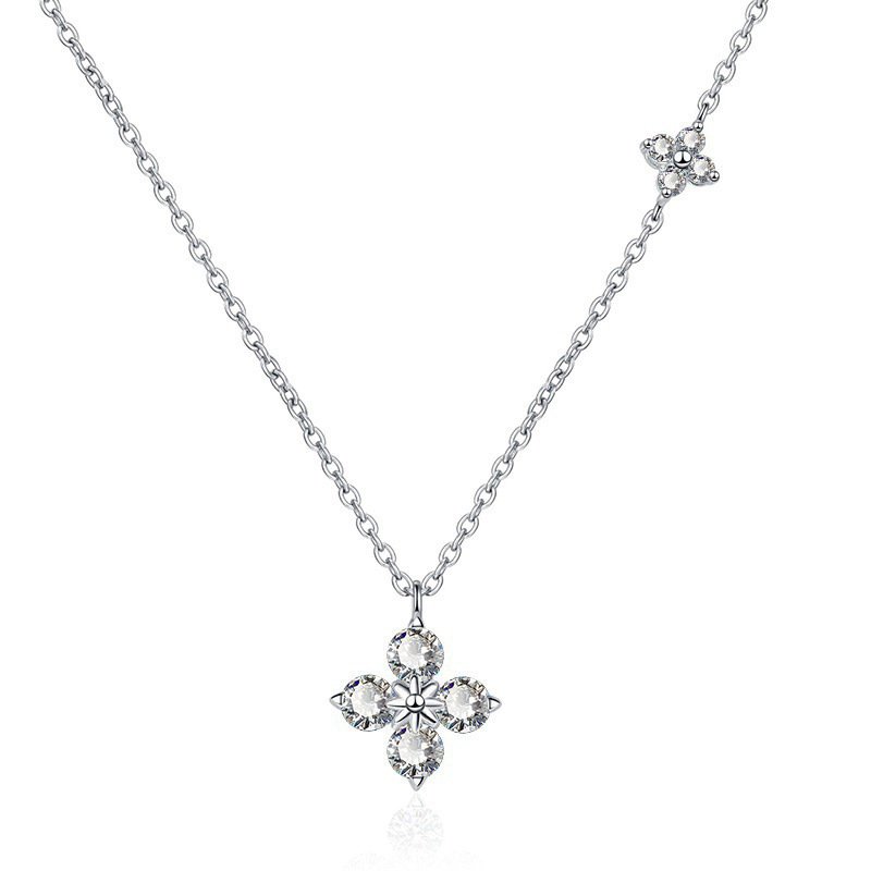 925 Silver Zircon Four-Leaf Clover & Leaf Necklace