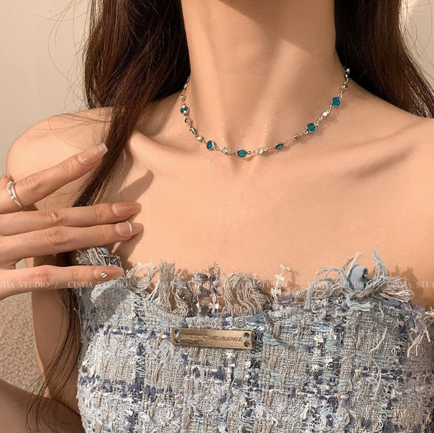 - Pre-Layered Design: Two complementary chains are combined into one necklace, featuring a blue crystal choker layer and a longer butterfly drop layer.