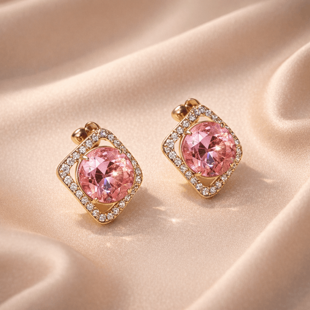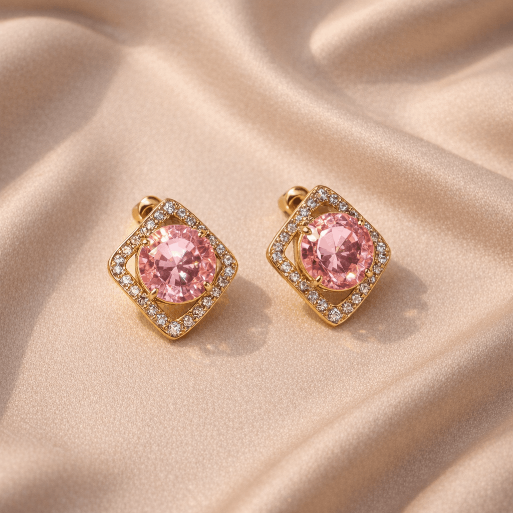 Whether you’re searching for designer stud earrings, luxury gold earrings for women, pink gemstone earrings, or modern minimal jewelry, this piece delivers the perfect balance of sophistication and style.