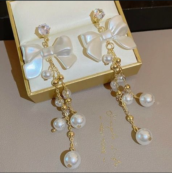 - Design: Feminine Bow Earrings with Pearl Tassel Drops