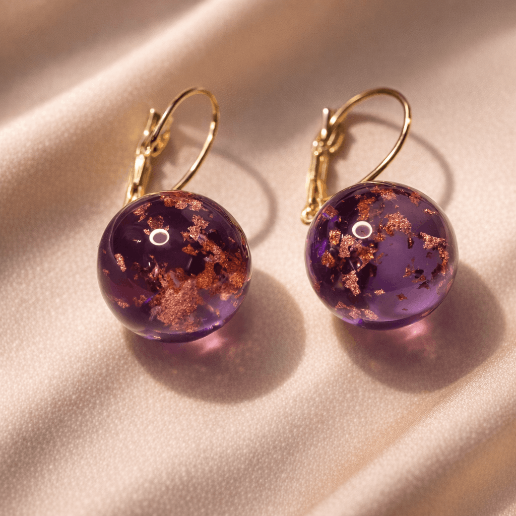 Encapsulated Gold Leaf Design: Each orb contains unique, hand-placed gold flakes that dance within the amethyst-toned depths, ensuring no two pairs are exactly alike.