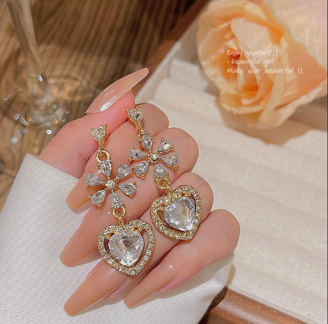 Be the first to review “Crystal Flower & Heart Dangle Earrings” Cancel reply