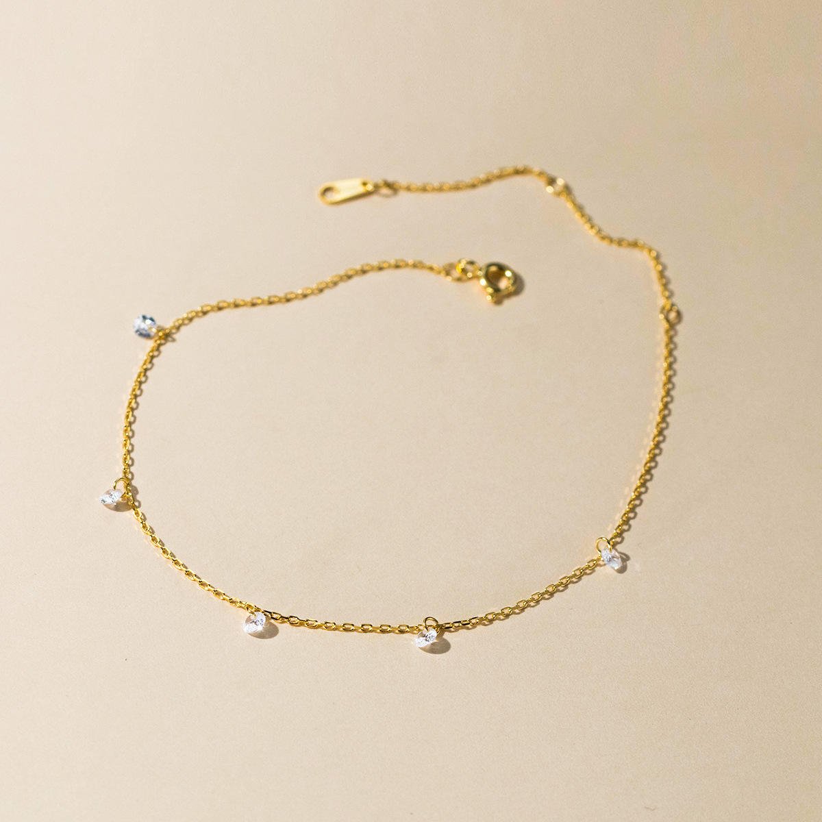 Elevate your warm-weather look with this beautiful Dainty Sparkle Anklet. A perfect blend of minimalist elegance and brilliant sparkle, it features several small, carefully set Zircon or CZ stones scattered along a fine, delicate chain. Crafted from genuine 925 Sterling Silver, this anklet is a lightweight, comfortable piece designed for continuous wear. Choose between the classic brilliance of Silver-Tone or the warm glow of Gold-Tone to personalize your style.