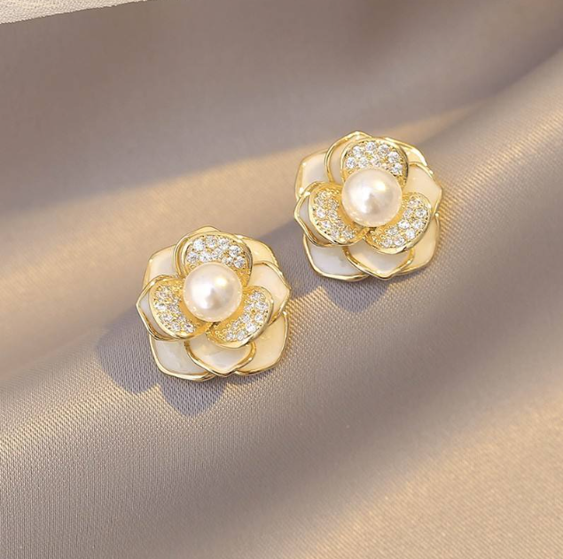 Lustrous pearl and micro zirconia detailing in a chic flower design