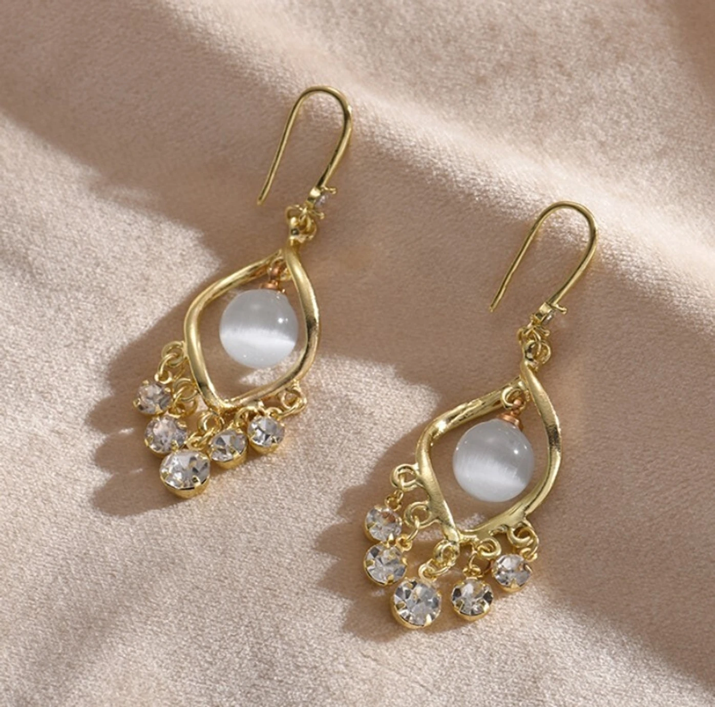 Kinetic Elegance: Features a unique hanging assembly where both the premium zircon stones and the large center pearl move with you, catching the light from every angle.