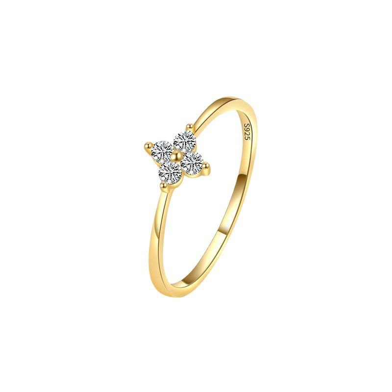 Gold Plated 925 Silver Zircon Four-Leaf Clover Ring