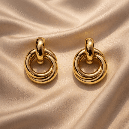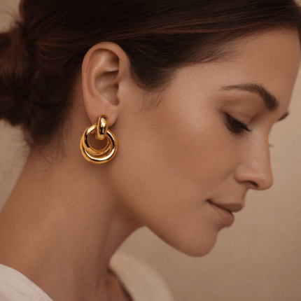 Encased in sculpted gold with a silhouette inspired by organic forms, the design flows with gentle elegance. The delicate drop structure adds movement, allowing the piece to shimmer with every turn.